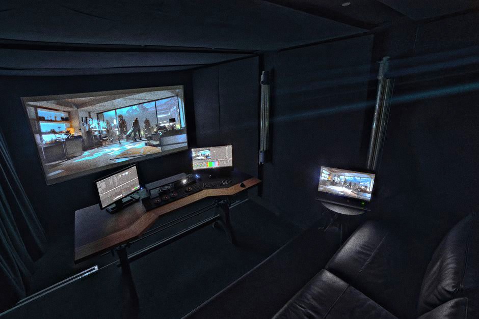 In Zusammenarbeit mit unserem Partner Celluloid VFX in Berlin-Kreuzberg, steht uns eine hochwertige Grading- und Abnahme-Suite zur Verfügung. Ideal für Color Grading, Bildabnahmen und finale Qualitätskontrollen. Auf Wunsch ist auch Remote-Grading möglich. Die Suite bietet komfortabel Platz für bis zu vier Personen plus Colorist:in. Zusätzlich kann eine weitere Sitzreihe unterhalb des Grading-Desks mit direkter Sicht auf die Leinwand genutzt werden.
